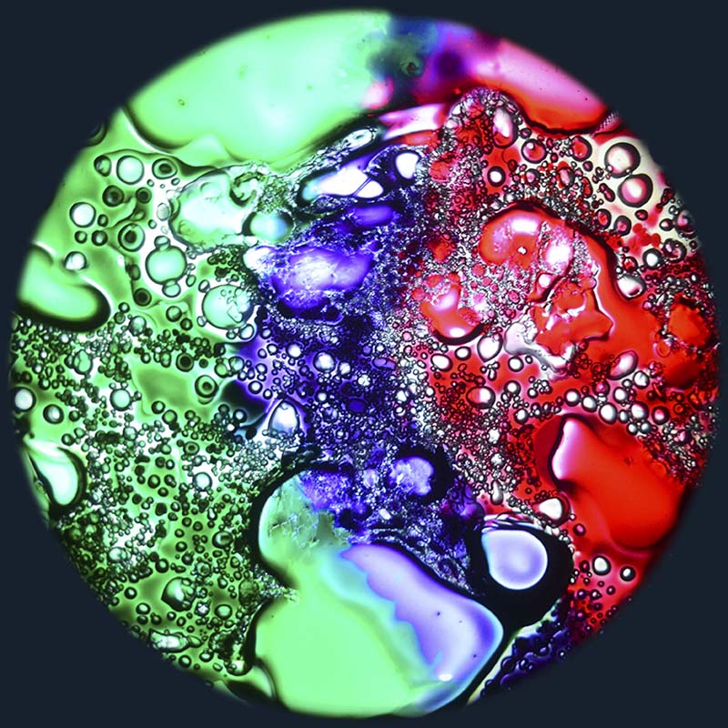 The brightness of mint, indigo, and cherry explodes out of this liquid wheel in a dynamic fusion of fizzing cosmic energy. The bubbles of each element flow like-charged plasma, emerging from the heart of Stardust Infusion.