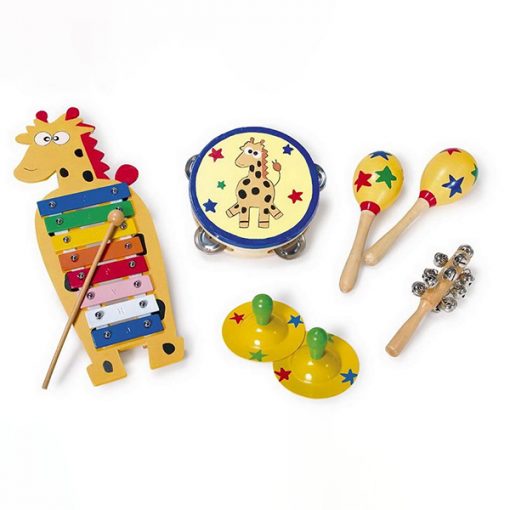 Giraffe Music Set – 6 different Giraffe instruments in a wooden box to allow little musicians to play for hours!